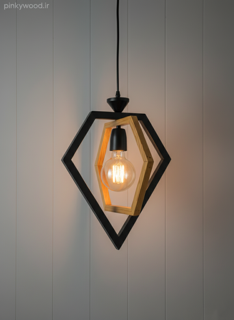 لوستر چوب و فلز مدل شش ضلعی تک شعله