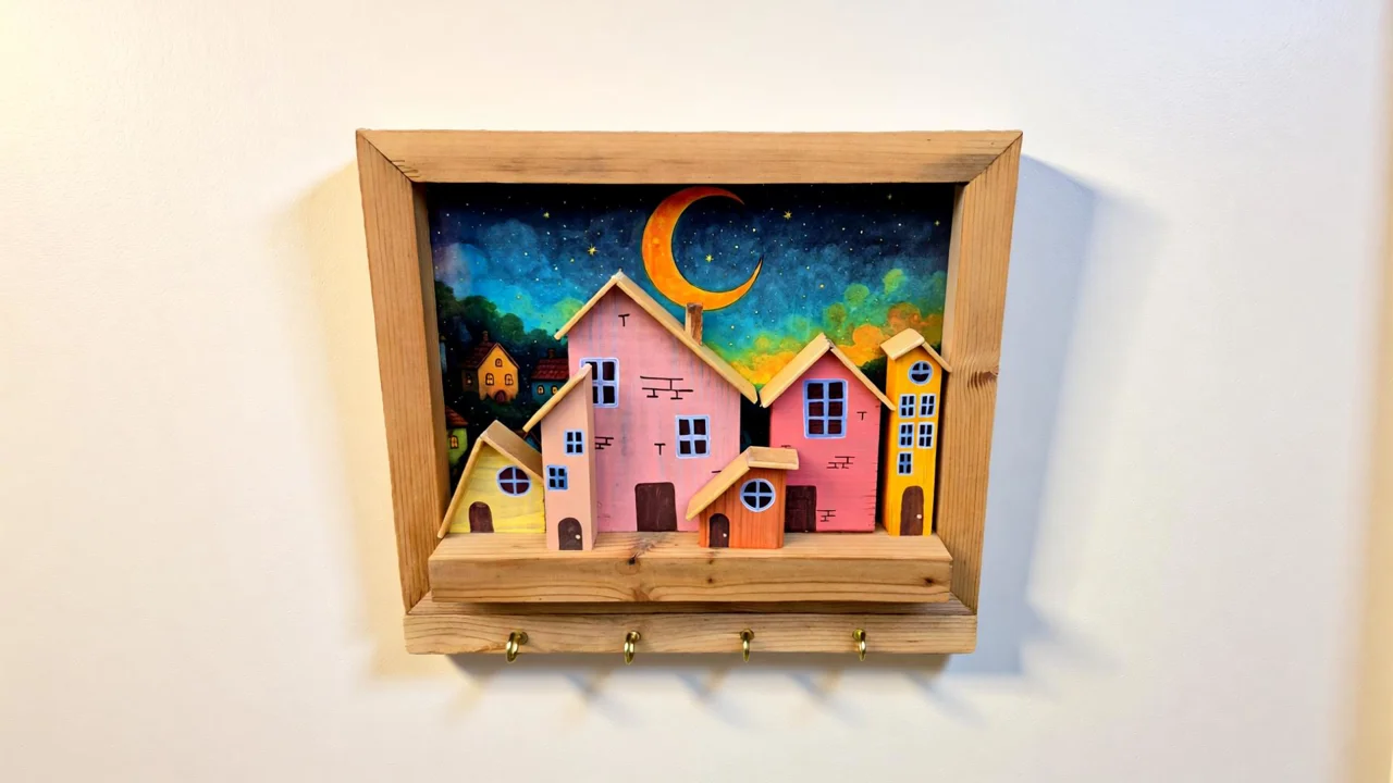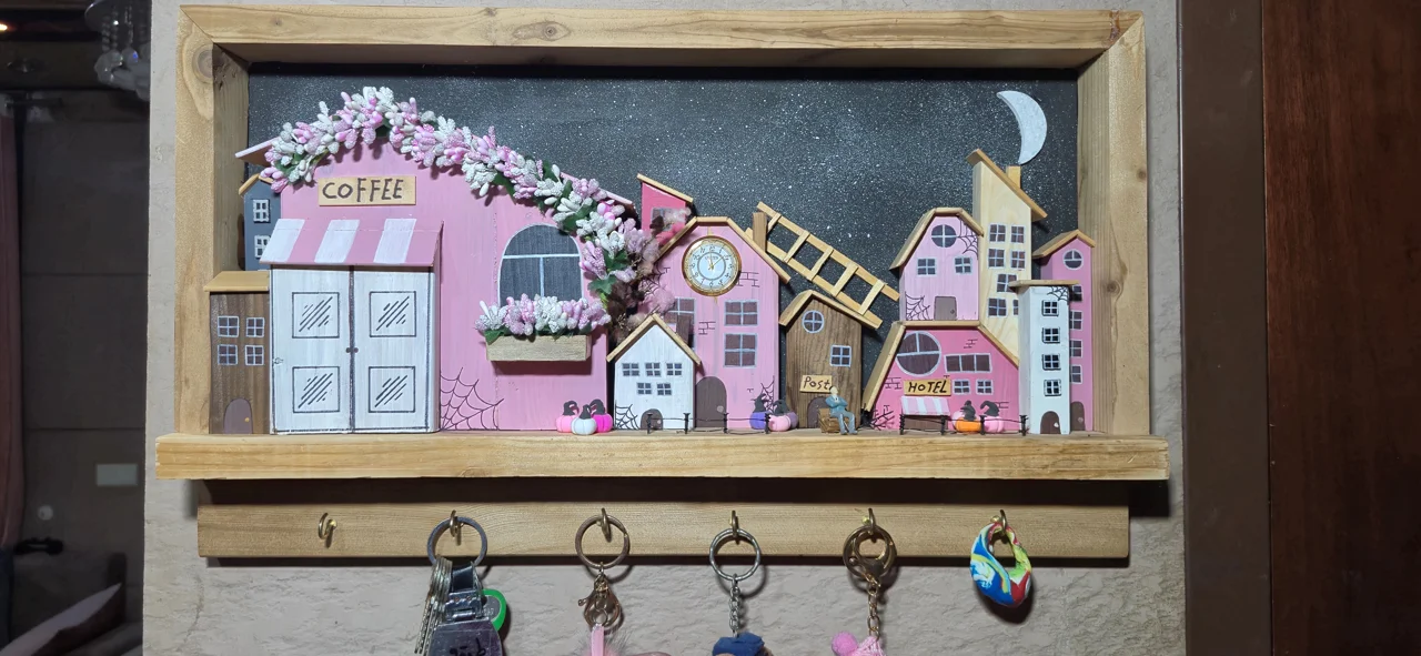 تابلو و جاکلیدی دیواری چوبی مدل روستا و دهکده