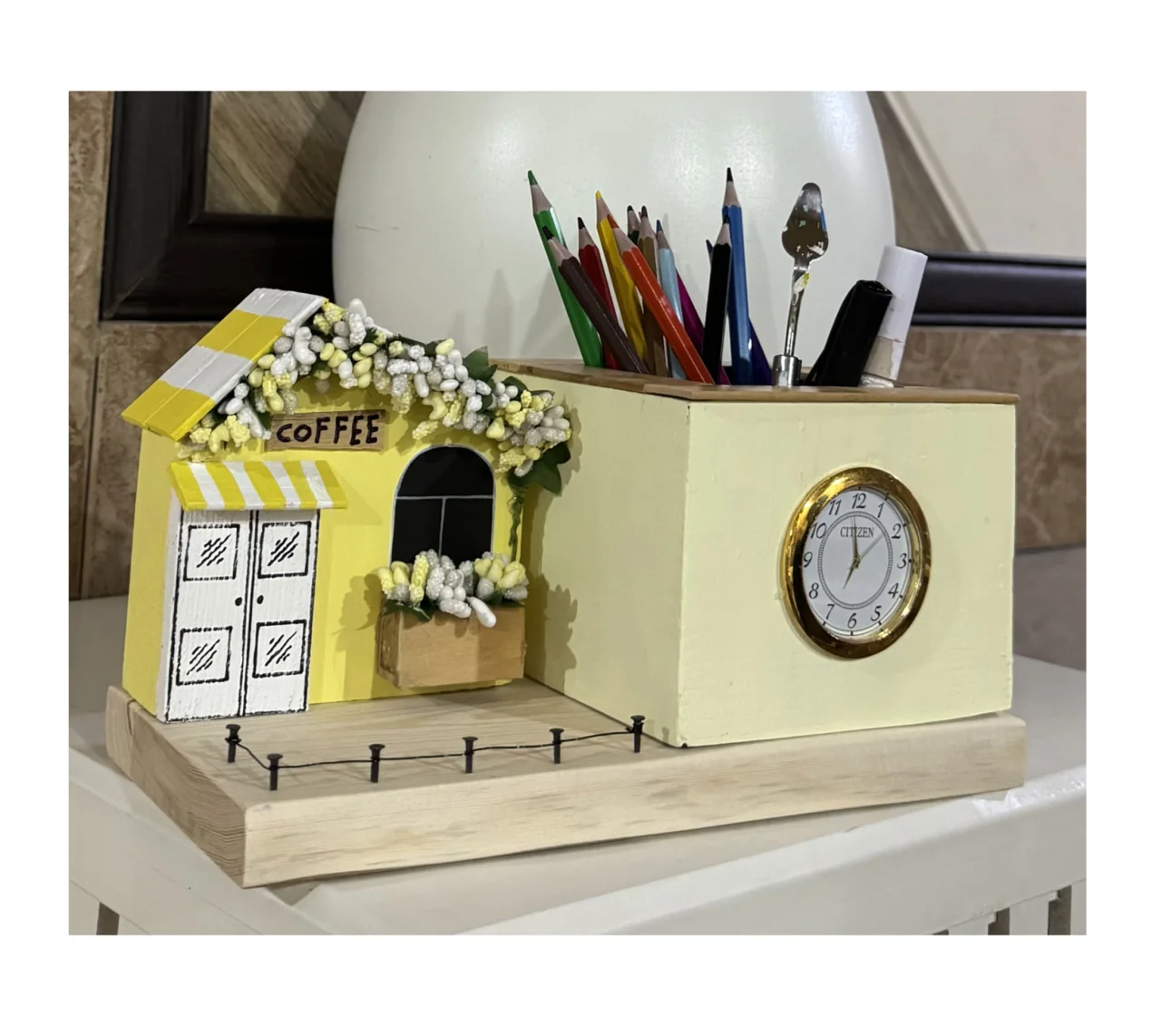 تابلو و جاکلیدی دیواری چوبی رنگ زرد مدل روستا و دهکده