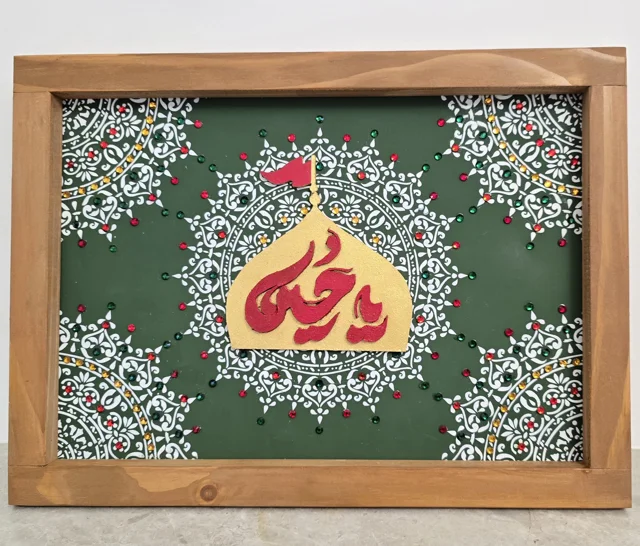 ترکیب هنر کالیگرافی مذهبی، تابلو چوبی دستساز، نگینتابلو یا حسین و رنگبندی چشمنواز، این اثر را به یک تابلو خاص و ماندگار تبدیل کرده است.