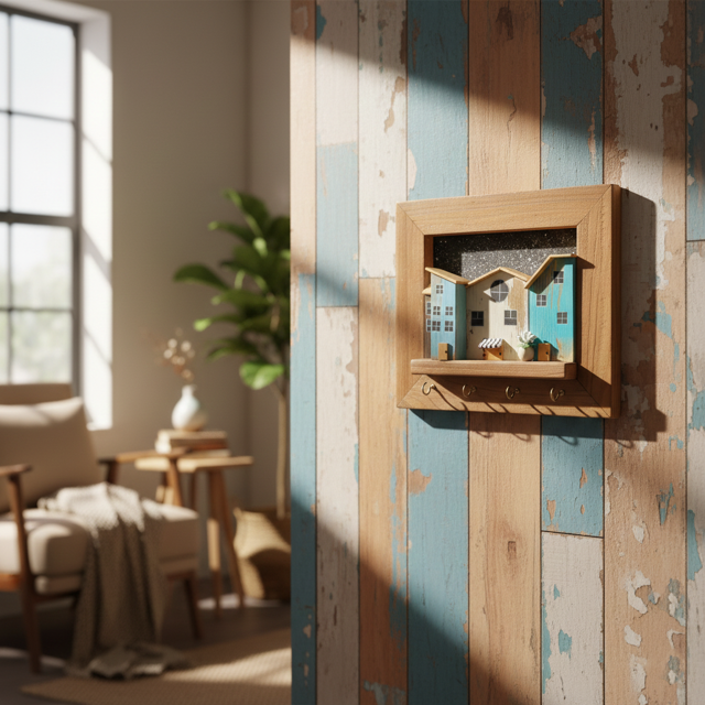 جاکلیدی چوبی طرح خانههای ساحلی با استفاده از چوب طبیعی و رنگهای آبی و کرم، جلوهای گرم و اصیل دارد. این تابلو با گلدان تزئینی و چهار قلاب فلزی مقاوم، هم کاربردی است و هم دکوراتیو، مناسب سبکهای روستیک، ساحلی، مینیمال و بوهو.