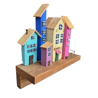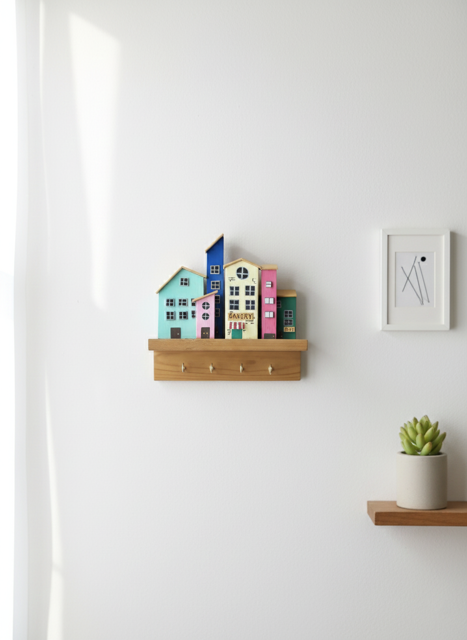 Handmade Colorful Village Wooden Key Holder - Vibrant Edition