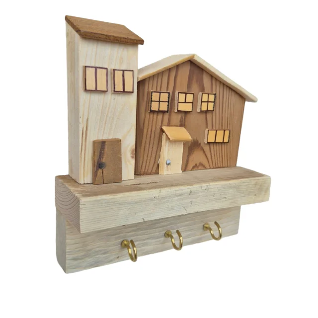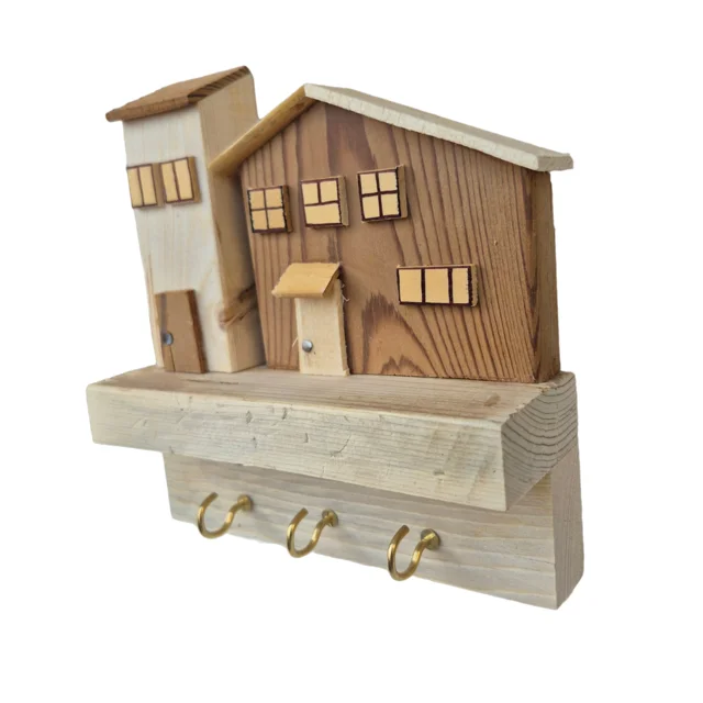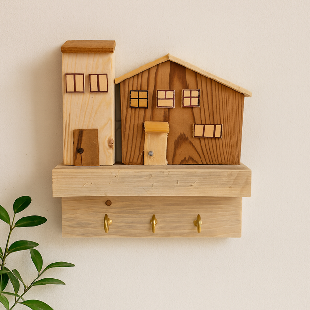 Handmade Light & Shadow Wooden Key Holder - Model 07