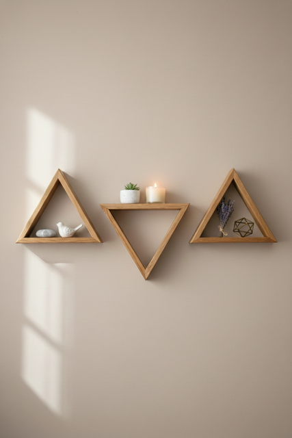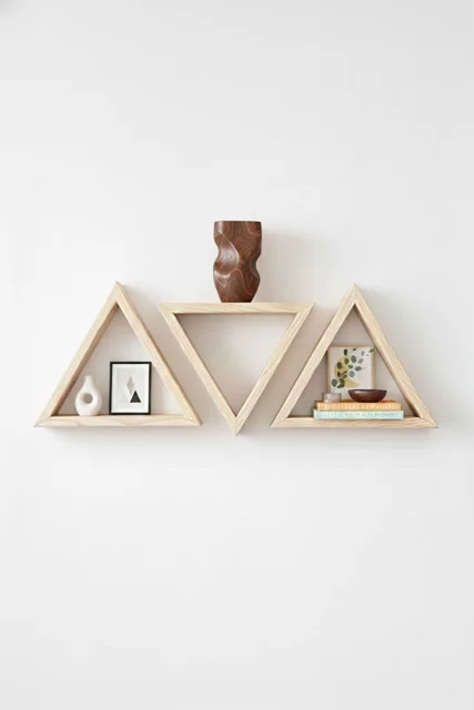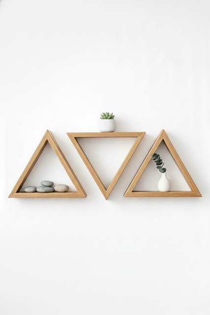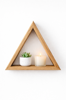 شلف دیواری رأس با طراحی مثلثی و مینیمال، انتخابی ساده و کاربردی برای نمایش وسایل دکوری سبک است. این شلف از چوب طبیعی ترموود و روس ساخته شده و با پرداخت دستی، بافت گرم و واقعی چوب را حفظ کرده است.