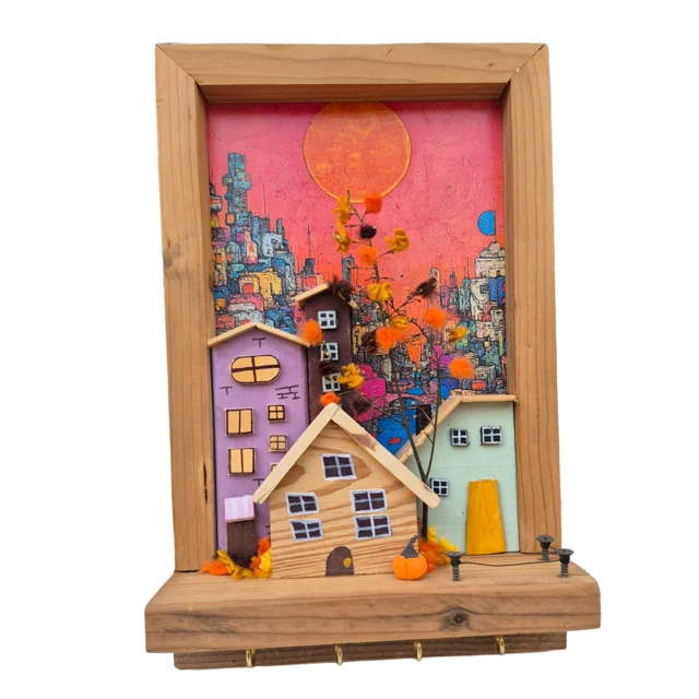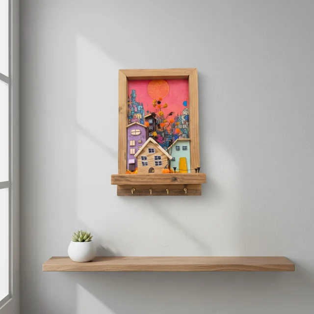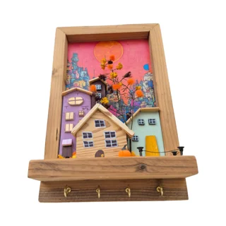 Handmade Wooden Key Holder & Decorative Wall Art - Sunny Town 2
