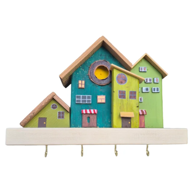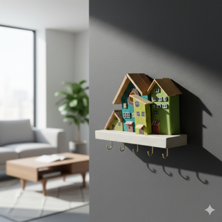 جاکلیدی چوبی دستساز طرح خانه از Pinky Wood، با رنگهای سبز پاستیلی روشن و تیره، حس طراوت و طبیعت را به فضای ورودی میآورد. طراحی سهبعدی و رنگآمیزی دقیق آن، زیبایی و دوام بالا را با سبک مینیمال و آرامشبخش تلفیق میکند.