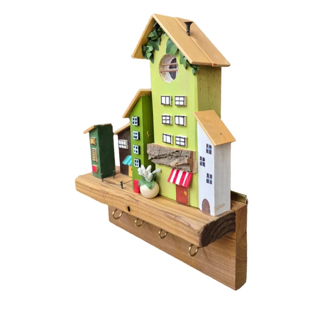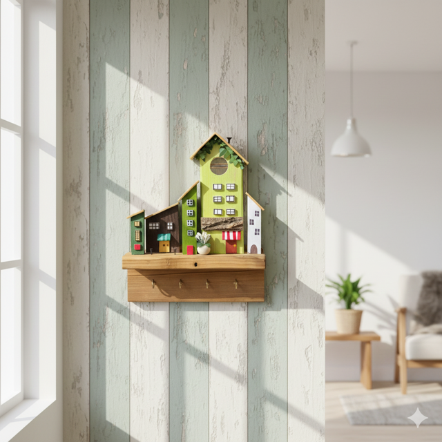 جاکلیدی چوبی دستساز طرح خانه با رنگهای سبز، قهوهای و سفید طراحی شده که جلوهای طبیعی و مدرن به دکور منزل میبخشد. ساختهشده از چوب روس و ترموود با دوام بالا و مقاومت در برابر رطوبت، مناسب سبکهای روستیک و مدرن؛ هدیهای زیبا و کاربردی است.