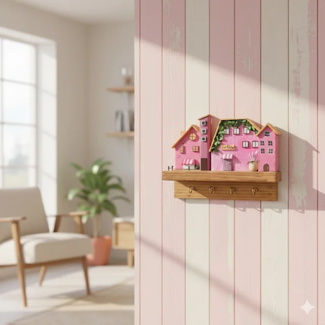 جاکلیدی دیواری چوبی صورتی دهکده فانتزی 5، یک محصول زیبا و کاربردی برای نظم بخشیدن به کلیدهای شماست. طراحی منحصر به فرد و رنگ صورتی جذاب آن، مناسب برای دکوراسیون منزل یا محل کار است. کیفیت بالای چوب و ساختار مقاوم آن، دوام و استفاده طولانیمدت را تضمین میکند.