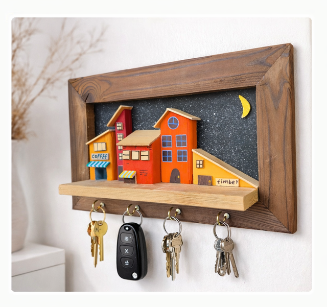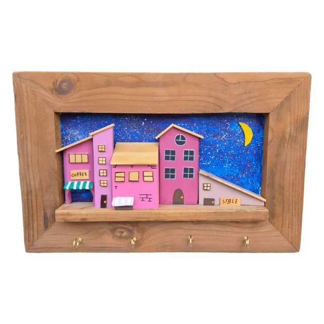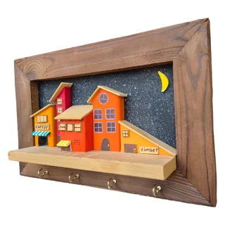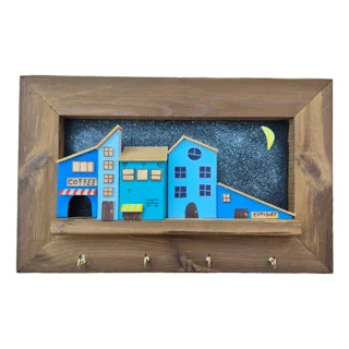 جاکلیدی دیواری با طرح خانههای سهبعدی دهکده، ساخته شده از چوب ترموود با کیفیت بالا و قاب چوبی مستحکم و مقاوم در برابر رطوبت. خانهها با رنگهای پاستیلی ملایم و پنجرههای برجسته و نقاشیشده تزئین شدهاند و پشتزمینه با رنگ اکرولیک هنرمندانه طراحی شده است. این جاکلیدی علاوه بر کاربردی بودن، جلوهای دکوراتیو و دلنشین به فضای شما میبخشد و گزینهای ایدهآل برای هدیه دادن یا زیبا کردن دیوار خانه است.